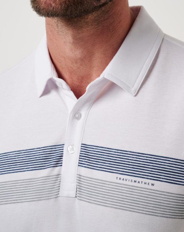 - TravisMathew logo printed on shoulder seam.